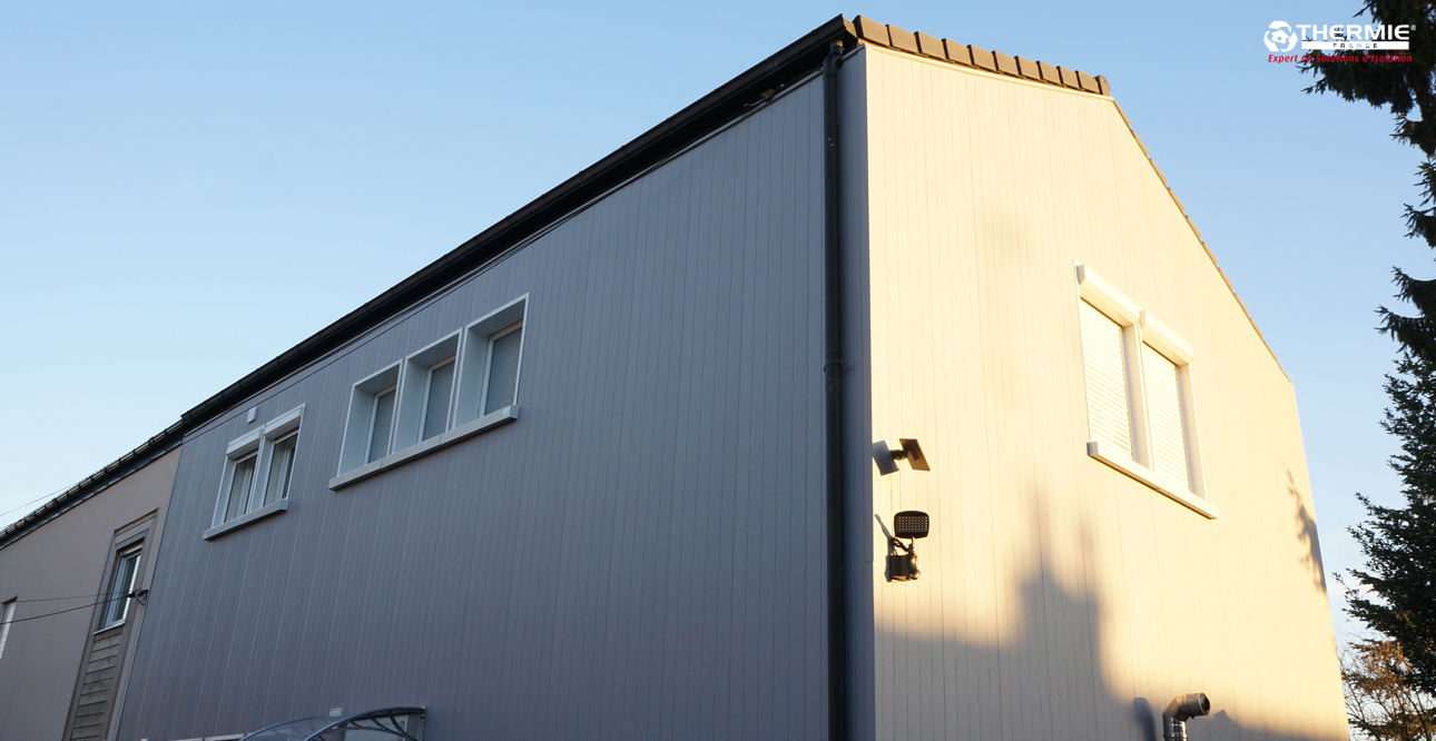 Grâce aux conseils de l’équipe Thermie France, Nathalie a choisi de protéger et d’embellir sa façade avec le bardage isolant Uniso.