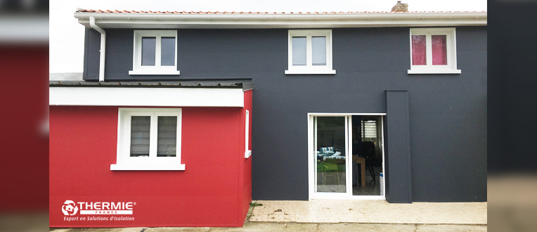 Adepte du contemporain, le couple a opté pour une Isolation Thermique par l’Extérieur (ITE). Après avoir reçu notre Technicien Conseil, ils hésitaient sur le choix des couleurs. Nous les avons aidé à se projeter par un photomontage avant travaux, et ils ont fini par opter pour le rouge et gris.