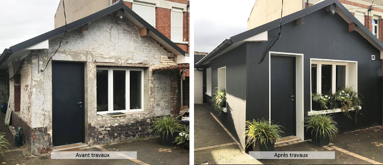 Notre intervention a créé un gros changement pour Laurence, sa maison retrouve une nouvelle jeunesse avec la finition de notre bardage à Lille lisse ardoise.