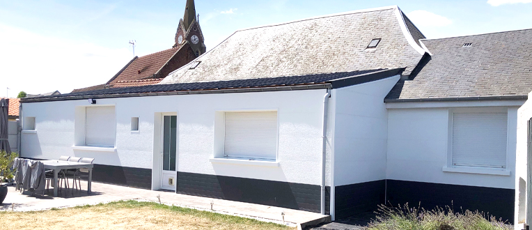Ils ont opté pour un aspect structuré blanc ainsi qu’un aspect clin ardoise en sous bassement. Un très bon choix d’association de couleurs qui apporte un coup de jeune à leur façade !