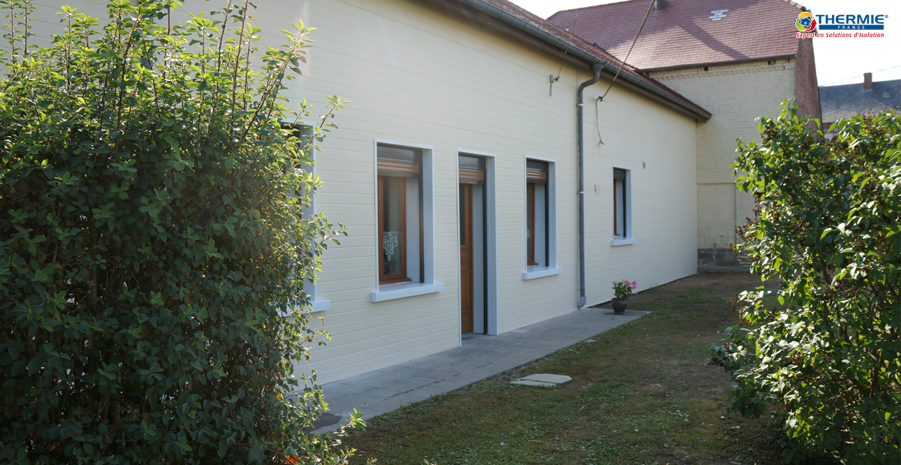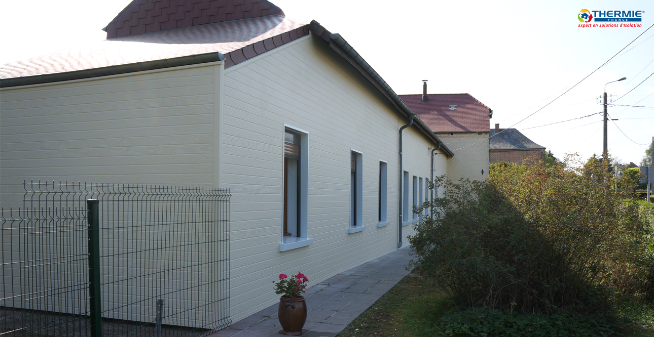 Nos poseurs se sont donc rendus à Eccles pour la pose d’un bardage aspect bois crème. Les murs étaient irréguliers, le chantier a donc nécessité un grand savoir-faire. Experts de l’isolation thermique sur les Hauts de France, nos poseurs ont su corriger les irrégularités pour une façade parfaite !