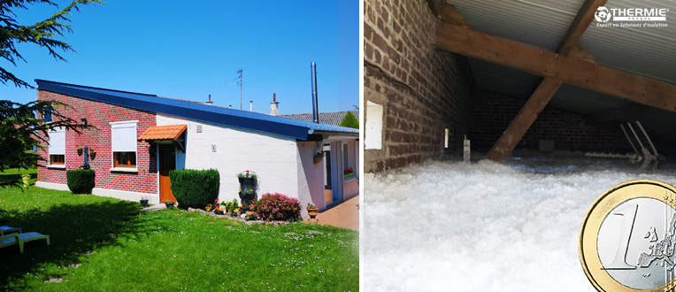 C’est à Epinoy, petit village situé dans l’axe Douai- Arras – Cambrai, que Catherine L. a acheté en 2000, cette jolie maison de campagne qui a été construite en 1954. Sa particularité, le toit plat avec pour seul accès une trappe par l’extérieur. Impossible de se tenir debout dans ces combles. Thermie France, a proposé le soufflage de laine minérale, la solution adaptée, et cerise sur le gâteau, pour seulement 1€ !