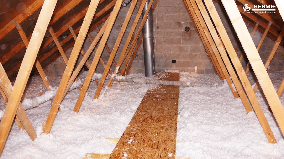 Puis 320 mm de laine minérale ont été soufflés sur une surface totale de 120 m².