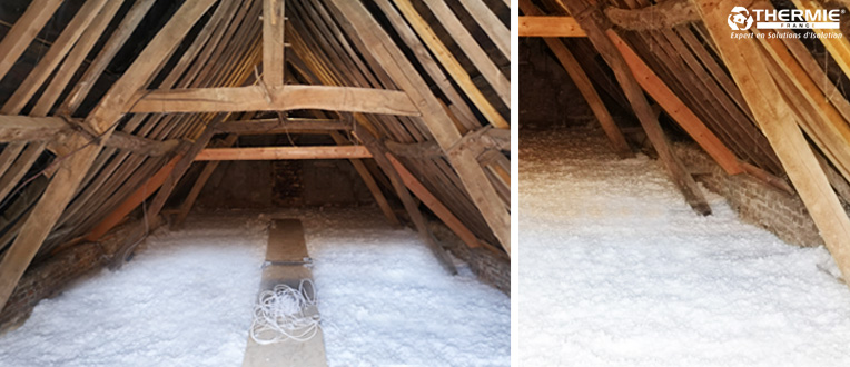 L’un de nos Techniciens Conseil s’est donc rendu chez Eric et Danielle pour étudier leurs besoins. Sans s’y attendre, nos clients ont pu bénéficier du programme de l’isolation à 1€ sans aucune démarche administrative à faire ! Notre équipe de poseurs s’est déplacée à Esnes et a procédé au soufflage de laine minérale sur la totalité des combles en prenant soin, comme le souhaitait Eric, de mettre en place un chemin de visite.