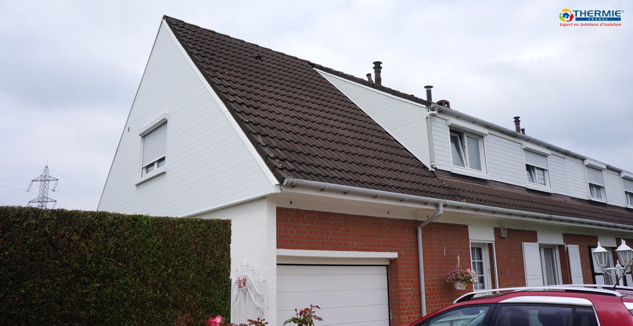 Gérard B. et sa femme vivent à Toufflers, près de Lille. Ils souhaitaient remplacer leur ancien bardage vieux de nombreuses années et dont l’efficacité était moindre. Ils ont pris contact avec Thermie France pour ce changement au niveau du pignon gauche et des chiens assis.