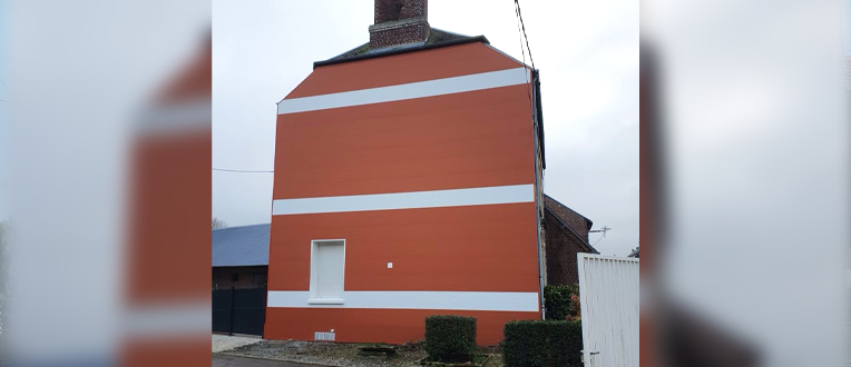 Benjamin, notre Responsable de l’agence Thermie France Picardie a donc accompagné Bruno dans son projet d’isolation et a fait en sorte de l’aiguiller dans son choix en ce qui concerne les nombreuses teintes que propose notre bardage. Parmi nos différentes finitions, Bruno a donc choisi l’aspect lisse avec l’un de nos nouveaux coloris : le brique rouge. De plus, il a voulu apporter une touche personnalisée en y ajoutant une autre couleur dans l’aspect lisse également : le blanc.