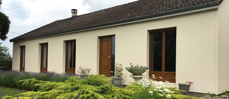 Michel et Martine ont opté pour l’effet crépi ivoire clair, la couleur idéale pour entrer en parfaite harmonie avec le paysage. Leur maison se fond complétement dans le décor et c’est ce qui plaît au couple.