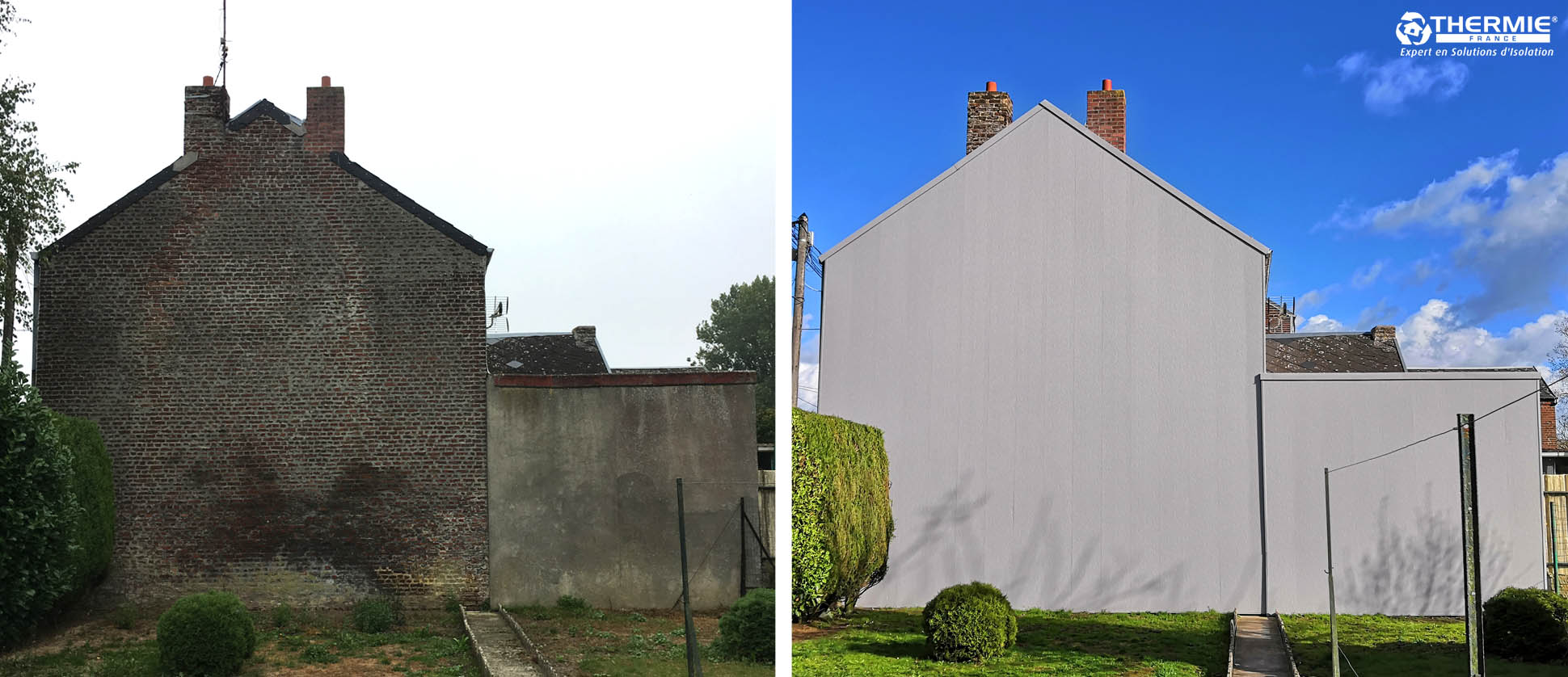 Yvonne M. habite à Caudry depuis de nombreuses années. Elle vit dans une petite maison en briques mitoyenne d’un seul côté. Avec le temps, son habitat s’est dégradé et elle ressentait de nombreux courants d’air dans les pièces situées côté pignon. Elle a pris contact avec Thermie France pour des travaux d’isolation thermique par l’extérieur.