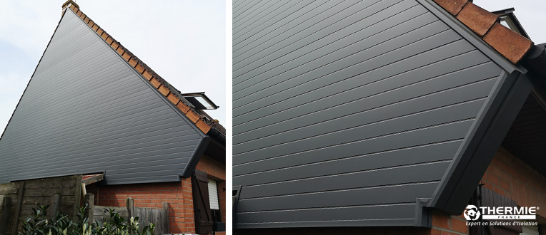 Notre cliente avait pour objectif principal de protéger son pignon des intempéries et ainsi stopper les infiltrations d’eau, mais aussi d’apporter un complément d’isolation. Elle a donc opté pour un bardage Uniso clin gris anthracite, une isolation thermique par l’extérieur de style contemporain. Depuis, elle se réjouit de ne plus voir son mur et son plafond se dégrader et va maintenant pouvoir refaire les peintures de son séjour.