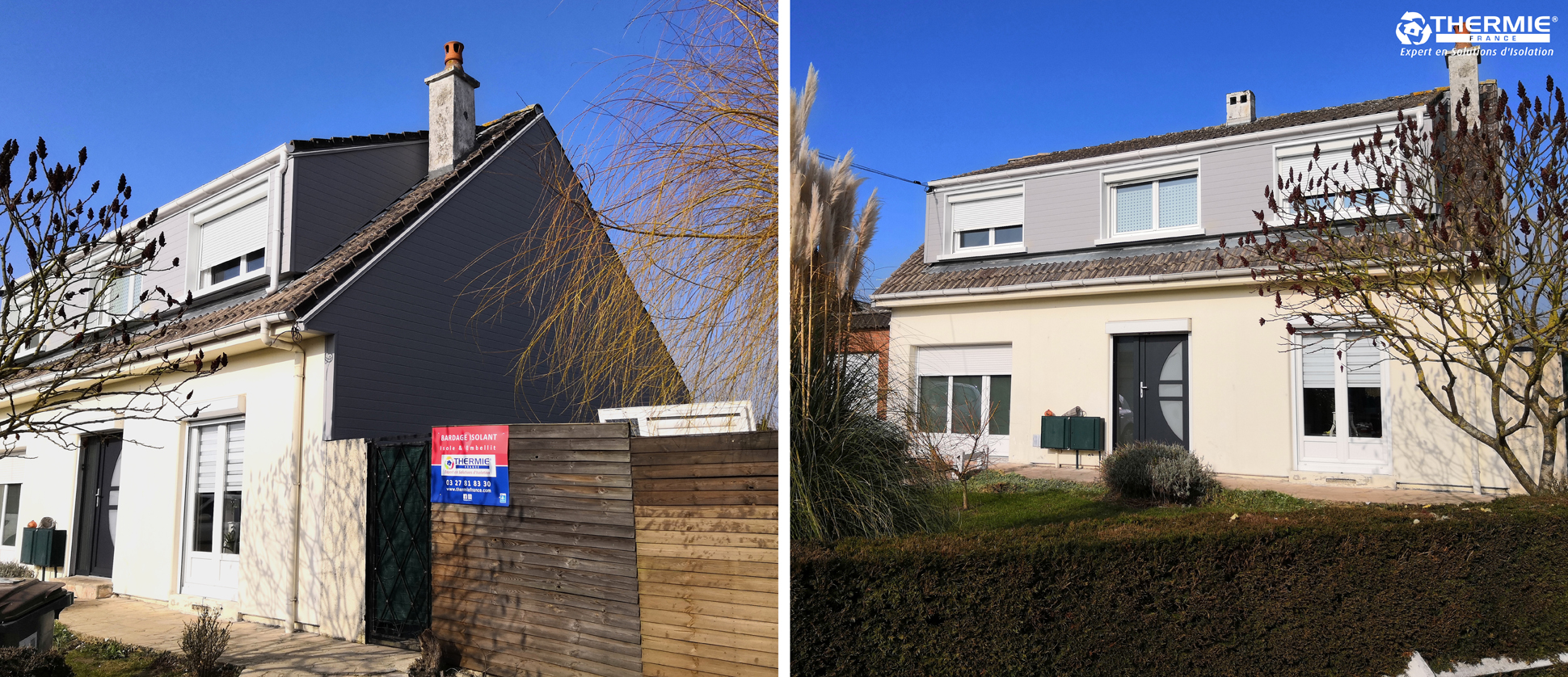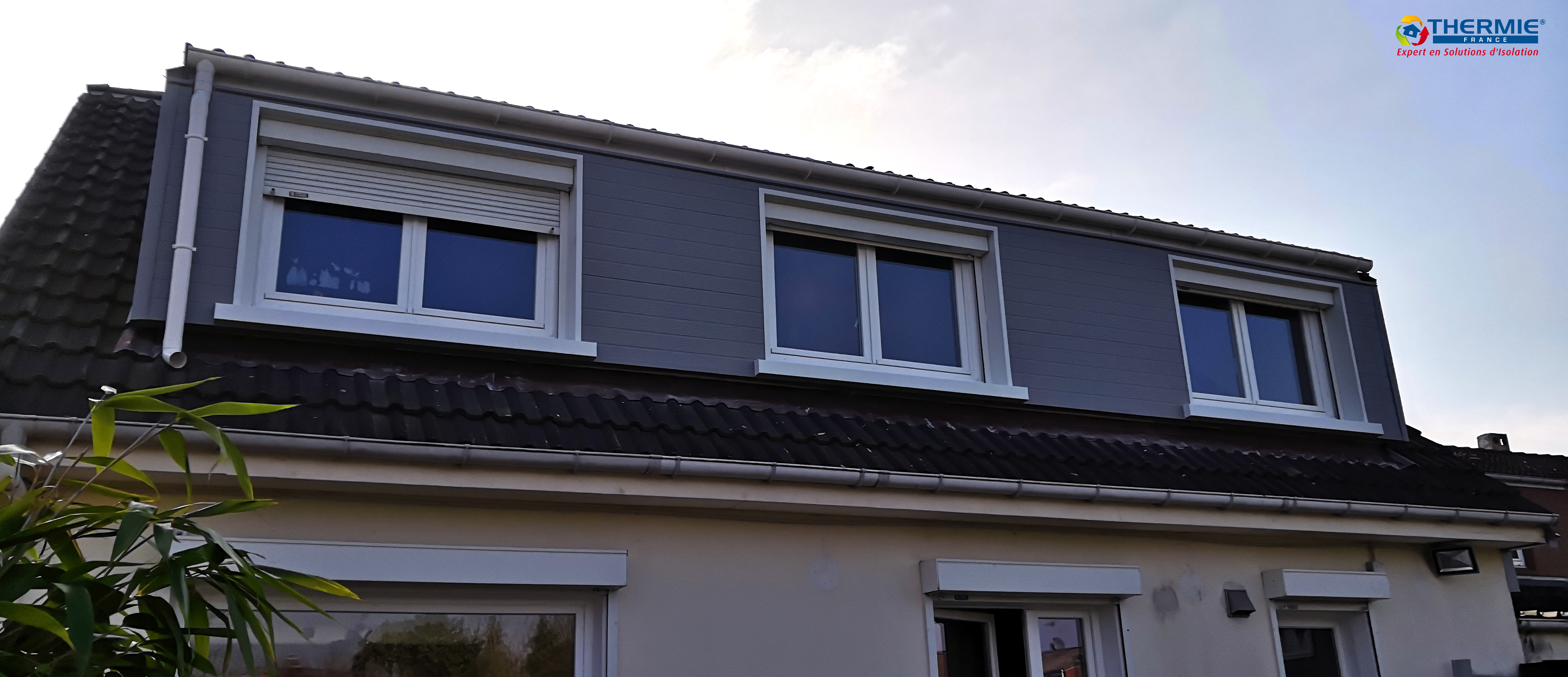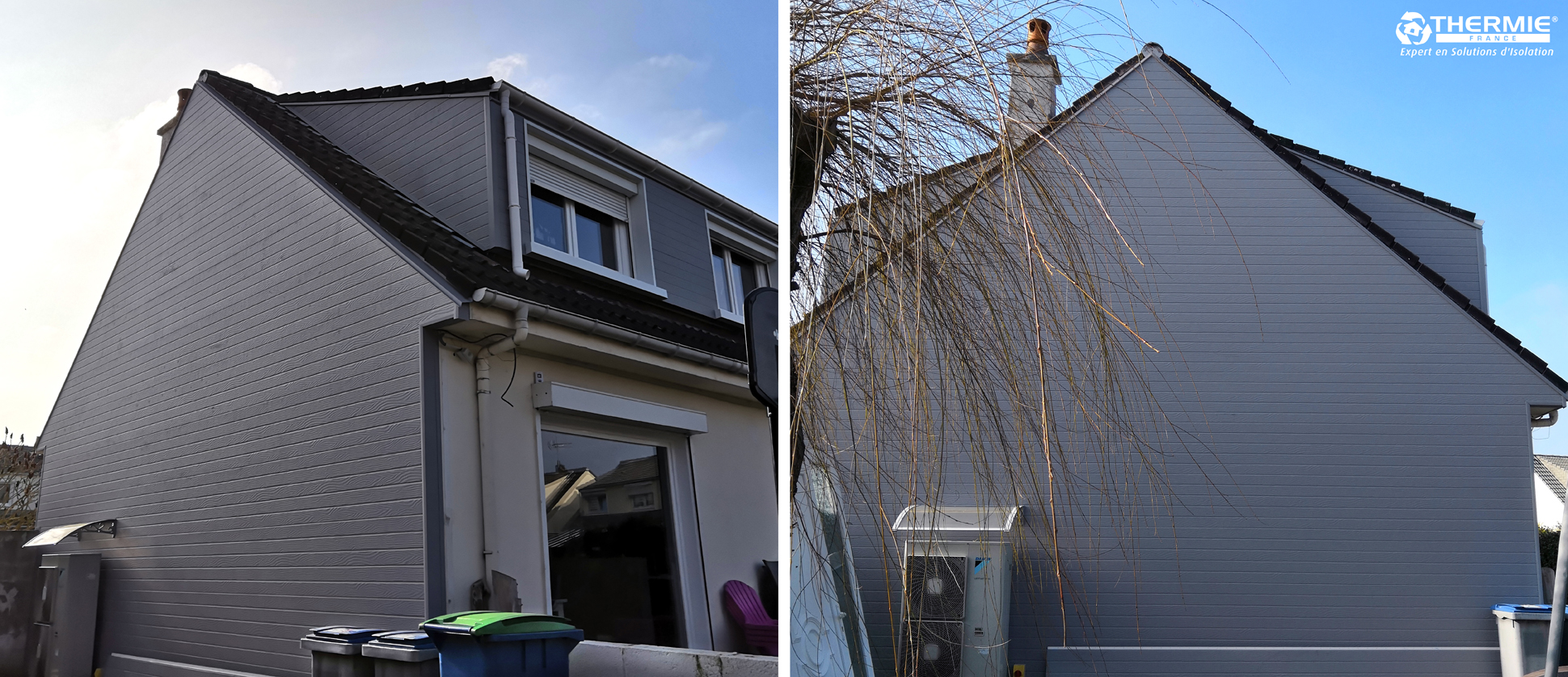 Pour protéger ses murs et éviter les courants d’air, Olivier W. a fait appel à Thermie France pour la pose d’un bardage isolant sur le pignon droit ainsi qu’au niveau des chiens assis. Il a choisi avec sa compagne un aspect bois gris, une couleur douce et actuelle. Il nous a également sollicité pour l’installation de nouvelles menuiseries et d’une VMC.
