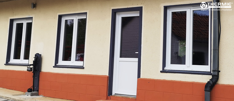 Depuis 1950, l’habitation est équipée de menuiseries en bois et en simple vitrage. Souhaitant veiller à l’isolation et à la sécurité de son logement, Daniel opte pour des portes et fenêtres en PVC blanc, ainsi qu’une isolation thermique par soufflage de laine minérale pour les combles perdus. Notre équipe de poseurs s’est donc rendue sur les lieux, et a pris soin de retirer les vieilles menuiseries des murs en torchis pour en installer de nouvelles en PVC. Notre Technicien Conseil n’a pas omis de préconiser l’installation d’une Ventilation afin d’éviter que le logement ne soit trop hermétique.