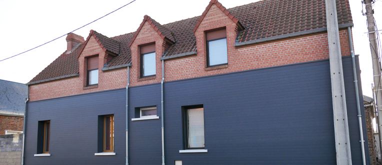 On se retrouve chez Marie-Anna dans la commune de Blécourt, une commune près de Cambrai. Souhaitant apporter une seconde vie à sa grande maison, elle a fait appel à nos services pour que nos équipes viennent poser le Bardage Uniso.