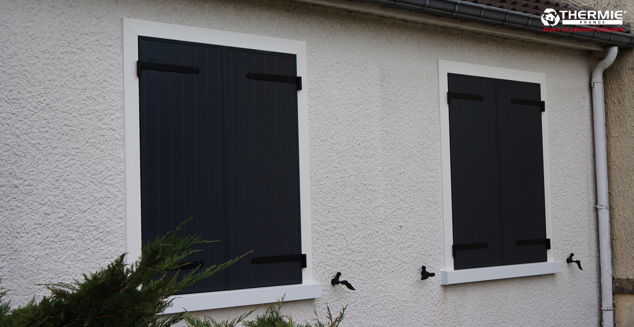 Du côté esthétique, ces menuiseries donnent un second souffle à la maison. Le coloris gris anthracite mât contraste avec le crépis blanc de la façade, et les volets battants donnent un caractère authentique et traditionnel.