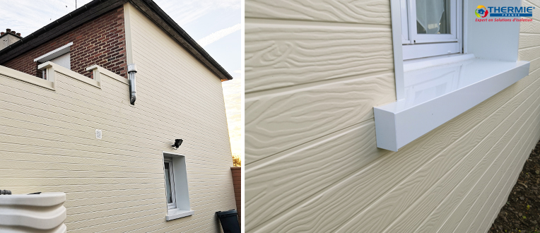 Vous souhaitez isoler les parties sources de pertes de chaleur et, embellir à la fois vos murs ? Faites comme Marc L. et Roseline L. ! Le couple de Neuville-Saint-Rémy aime faire travailler les entreprises locales du Cambrésis, et n’a pas hésité à faire appel à Thermie France. C’est à seulement 10 km de notre agence de Marquion, que nous avons posé un bardage Uniso de Myral beige effet bois.